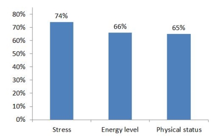 As usual we conducted a short survey before and after the course. This year, the survey showed that 74 % the participants felt less stressed when the course had ended. 66 % felt their energy level had increased and 65 % that their physical status had improved. The figure below illustrates theses results.